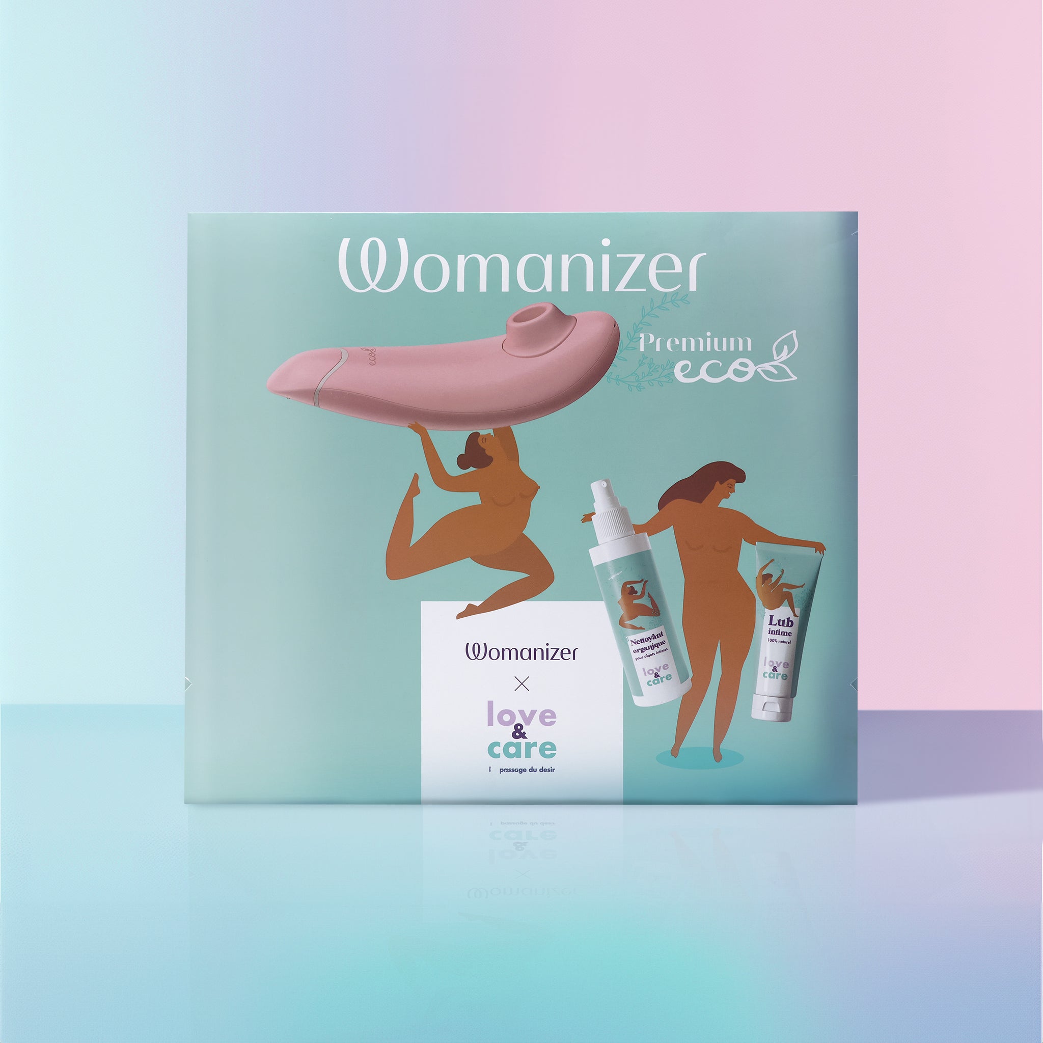 ✓   Le Womanizer Premium Eco + Lub et nettoyant Love & Care